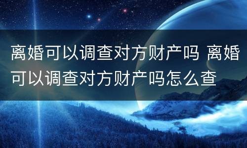 离婚可以调查对方财产吗 离婚可以调查对方财产吗怎么查