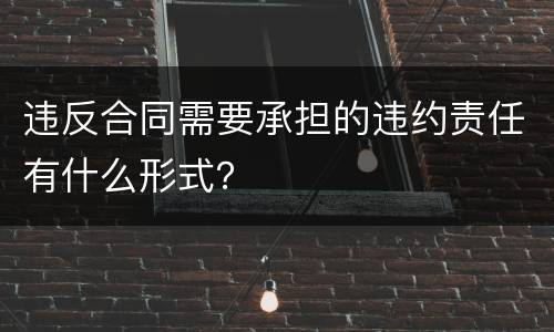 违反合同需要承担的违约责任的形式包括继续履行合同的规定还有条件,对违约的行为造成的损失进行赔偿等,或者采取其他的补救措施进行相应的补救,如果合同约定违约金,需要支付对方合同违约金。