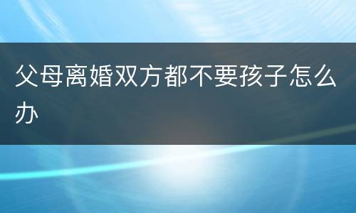 父母离婚时双方都不要孩子的,法院将会按以下处理:1、离婚诉讼审理期间,父母都不要孩子的,法院会先先行裁定一方抚养孩子;2、离婚诉讼审理阶段,法院将根据有利于子女健康成长的原则来决定抚养人。