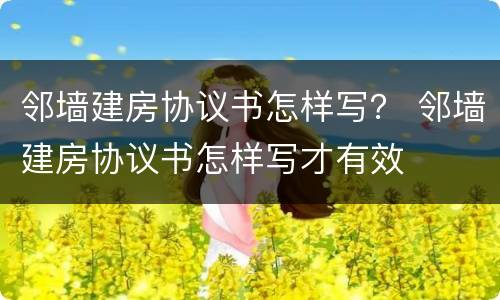 邻墙建房协议书怎样写? 邻墙建房协议书怎样写才有效