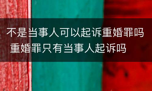 不是当事人是不可以起诉重婚罪的,因为重婚罪是属于自诉类型的案件,也就是属于不告不理的案件,需要由当事人自行向法院进行起诉,法院才会受理案件,当然当事人也可以向公安机关进行报案,因为重婚罪是属于刑事类型