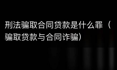 刑法骗取合同贷款是什么罪(骗取贷款与合同诈骗)