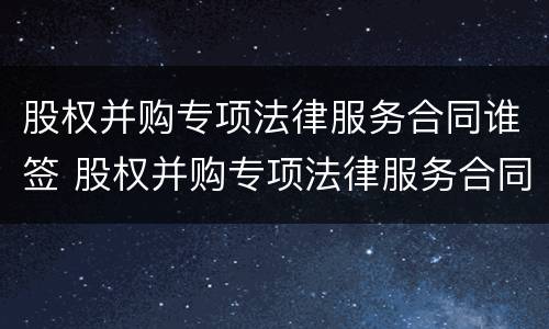 股权并购专项法律服务合同谁签 股权并购专项法律服务合同谁签的