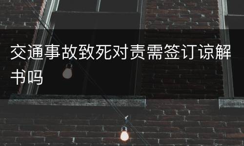 交通事故致人死亡负对等责任的,法律并没有规定过必须签订谅解书,签谅解书本身就建立在自愿的基础上,不过,如果受害人的家属愿意签订谅解书,《刑事诉讼法》规定,取得受害人或者受害人家属谅解的,量刑时应该依法