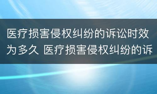 医疗损害侵权纠纷的诉讼时效为多久 医疗损害侵权纠纷的诉讼时效为多久啊