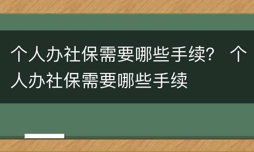 个人办社保需要哪些手续? 个人办社保需要哪些手续
