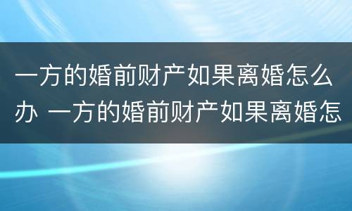 一方的婚前财产如果离婚怎么办 一方的婚前财产如果离婚怎么办呢