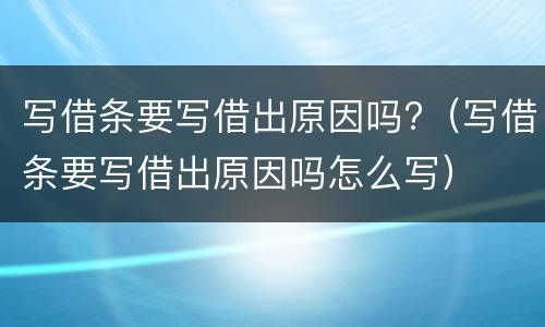 写借条要写借出原因吗?(写借条要写借出原因吗怎么写)