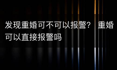 发现重婚可不可以报警? 重婚可以直接报警吗