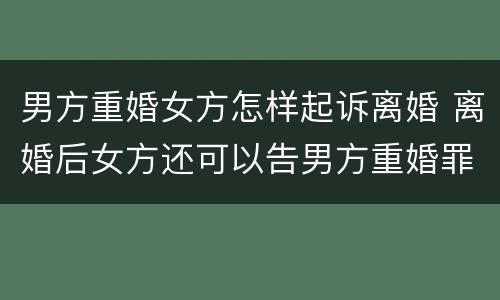男方重婚女方怎样起诉离婚 离婚后女方还可以告男方重婚罪吗