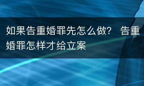如果告重婚罪先怎么做? 告重婚罪怎样才给立案