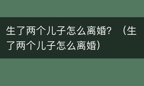 生了两个儿子怎么离婚?(生了两个儿子怎么离婚)