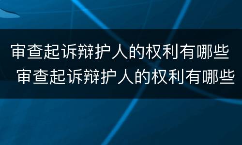 审查起诉辩护人的权利包括可以查阅案件的诉讼文书,鉴定的资料或者复制和摘抄这些材料,还可以和在押的犯罪嫌疑人进行会见还有通信的行为,并且可以收集案件相关的证据还有材料证明案件的过程。
