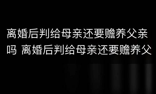离婚后判给母亲还要赡养父亲吗 离婚后判给母亲还要赡养父亲吗知乎