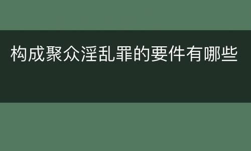 1、聚众淫乱罪侵犯的客体是公共秩序。2、在客观方面具有两大特征:一是聚众行为;一是淫乱行为。3、主体为一般主体,凡年满16周岁且具备刑事责任能力的自然人均能构成本罪。4、在主观方面表现为直接故意。