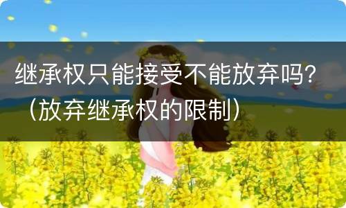 继承权并不是只能接受不能放弃,继承权对于继承人来说的话,是属于我国法律当中所规定的一项权利,所以完全是可以放弃的。同时继承权的放弃必须要通过明确的意思表示的方式才能够做出,否则的话不发生法律效力的。