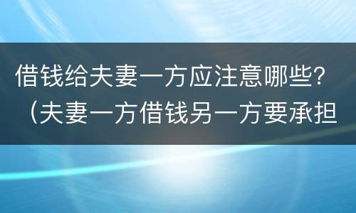 借钱给夫妻一方应注意哪些?(夫妻一方借钱另一方要承担吗)