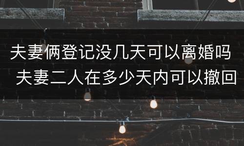 夫妻俩登记没几天可以离婚吗 夫妻二人在多少天内可以撤回离婚登记申请