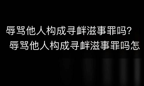 不构成寻衅滋事罪的。辱骂他人一般会构成侮辱、诽谤罪,但是不满足构成寻衅滋事罪的情况,不过辱骂他人也是一种性质非常恶劣的违法犯罪的行为,对于他人的人格也将造成非常负面的影响。