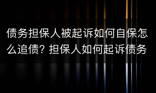 债务担保人被起诉如何自保怎么追债? 担保人如何起诉债务人,债务人不还钱,可以申请强制执行