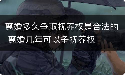 离婚不管多久争取抚养权都是属于合法的。夫妻离婚之后,如果关于孩子的抚养权方面的问题,双方当事人协商不成的情况之下,选择向人民法院起诉,要求变更孩子的抚养权,完全是属于一种合法的情况,但是必须要提交证据