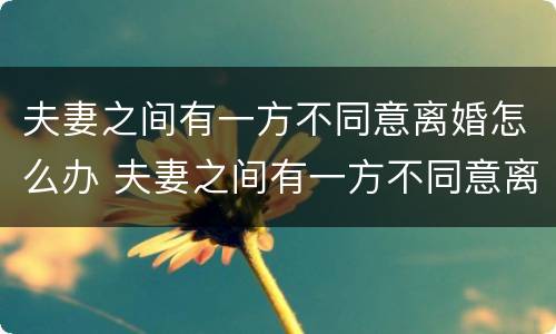 夫妻之间有一方不同意离婚怎么办 夫妻之间有一方不同意离婚怎么办理