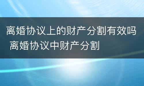 离婚协议上的财产分割有效,只要是双方当事人协商一致的内容,那么都是属于合法有效的,当然呢也必须是内容,不能够违反法律强制性法律规范,也就是内容并不能够损害到他人的利益,也不能够违反公共利益。