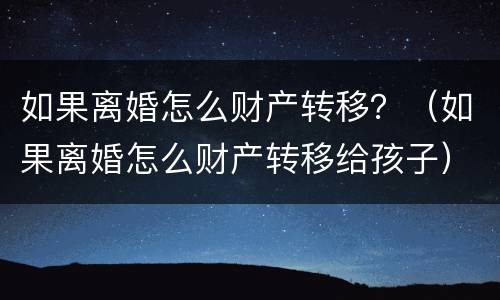 如果离婚怎么财产转移?(如果离婚怎么财产转移给孩子)