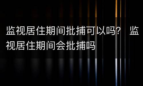 监视居住期间批捕是可以的,如果在监视居住期间被告人违反了相关的规定并且情节比较严重的情况,可以执行批捕,如果公安机关有逮捕令的情况,可以直接逮捕,没有逮捕令可以先进行拘留。