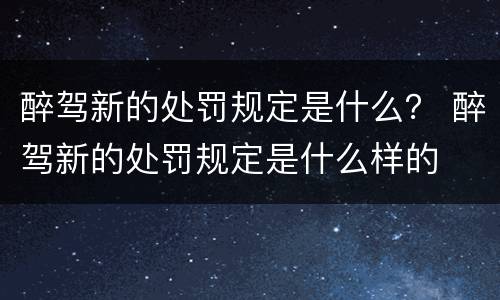 醉驾新的处罚规定是什么? 醉驾新的处罚规定是什么样的
