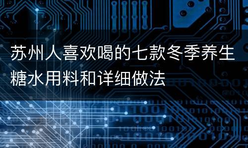 苏州人喜欢喝的七款冬季养生糖水用料和详细做法