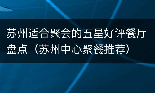 苏州适合聚会的五星好评餐厅盘点(苏州中心聚餐推荐)