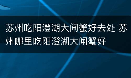 苏州吃阳澄湖大闸蟹好去处 苏州哪里吃阳澄湖大闸蟹好