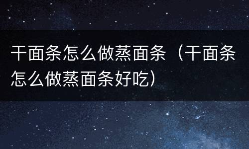 干面条怎么做蒸面条(干面条怎么做蒸面条好吃)