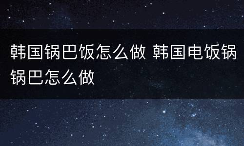韩国锅巴饭怎么做 韩国电饭锅锅巴怎么做