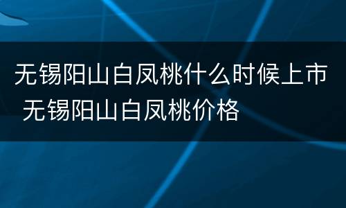 无锡阳山白凤桃什么时候上市 无锡阳山白凤桃价格