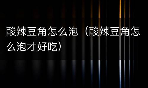 酸辣豆角怎么泡(酸辣豆角怎么泡才好吃)