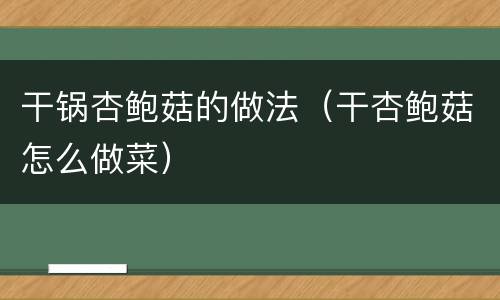 干锅杏鲍菇的做法(干杏鲍菇怎么做菜)