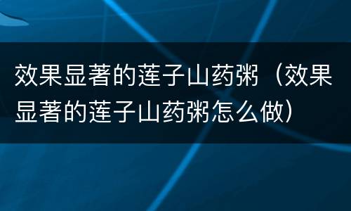 效果显著的莲子山药粥(效果显著的莲子山药粥怎么做)