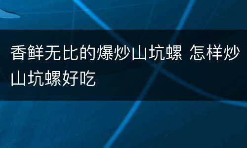 香鲜无比的爆炒山坑螺吃过没?下面带你了解一下。