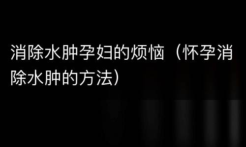 消除水肿孕妇的烦恼(怀孕消除水肿的方法)