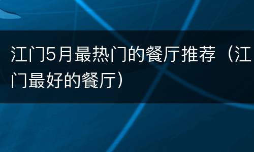 江门5月最热门的餐厅推荐(江门最好的餐厅)