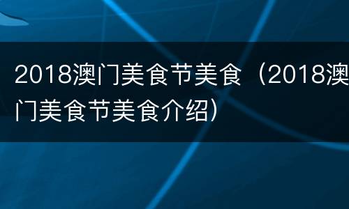 2018澳门美食节美食(2018澳门美食节美食介绍)