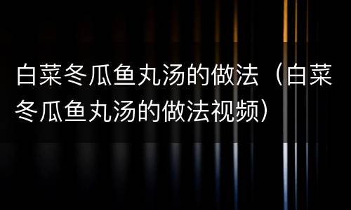 白菜冬瓜鱼丸汤的做法(白菜冬瓜鱼丸汤的做法视频)
