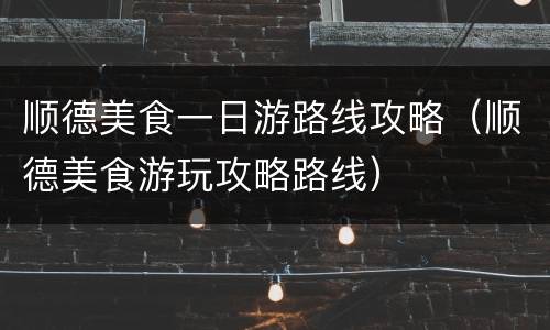 顺德美食一日游路线攻略(顺德美食游玩攻略路线)