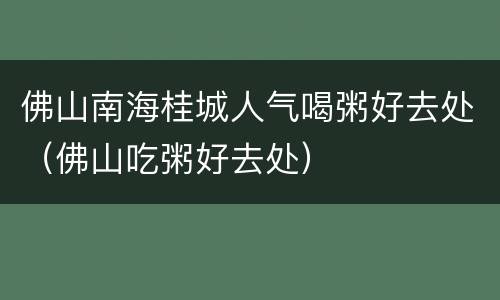 佛山南海桂城人气喝粥好去处(佛山吃粥好去处)