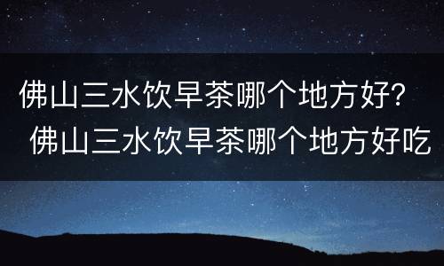 佛山三水饮早茶哪个地方好? 佛山三水饮早茶哪个地方好吃