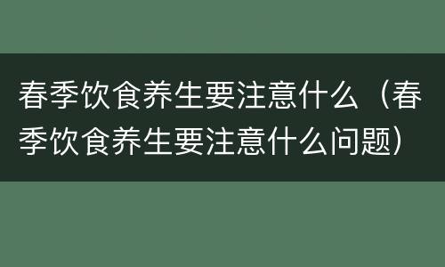 春季饮食养生要注意什么(春季饮食养生要注意什么问题)