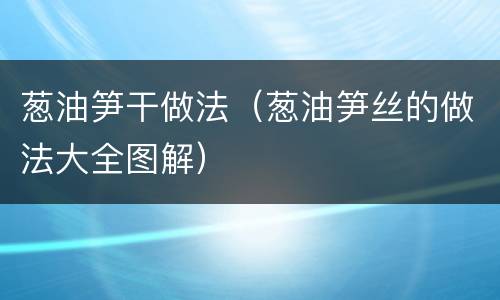 葱油笋干做法(葱油笋丝的做法大全图解)