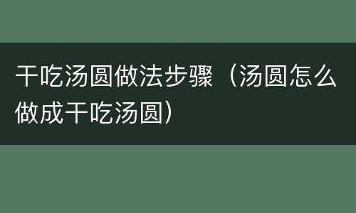 干吃汤圆做法步骤(汤圆怎么做成干吃汤圆)